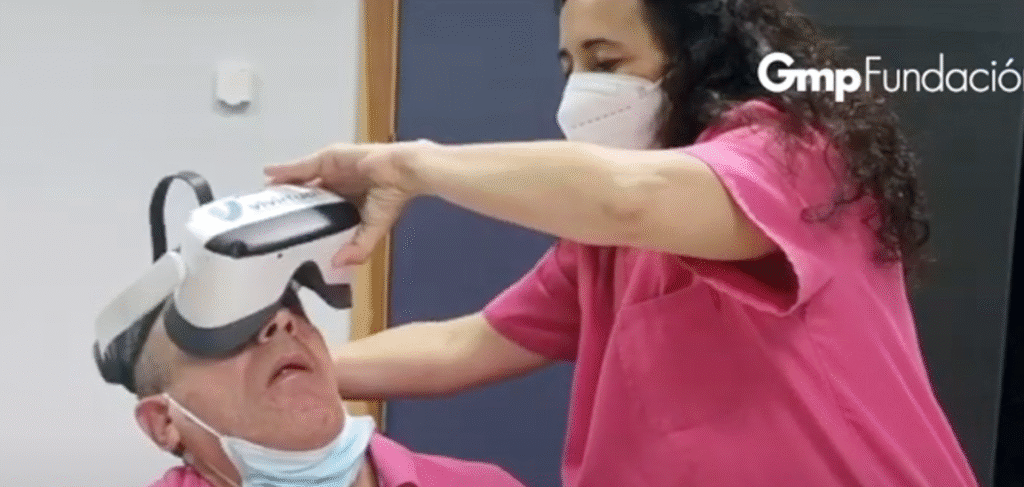 A través del proyecto “Rompiendo barreras”, Fundación Betesda ha adquirido dispositivos informáticos y aplicaciones de realidad virtual, y ha formado a sus profesionales en el uso de los mismos, con el fin de implementar un taller de neurorehabilitación para prevenir el deterioro cognitivo y mantener las habilidades de nuestros usuarios, personas con discapacidad intelectual. Además, también se están utilizando estas herramientas para actividades de ocio. El objetivo de la herramienta es el uso de la multisensorialidad a través de estímulos de carácter auditivo y visual. La inmersión total se consigue al recrear de la forma más precisa posible un entorno determinado, reconocible para la persona que disfruta de la experiencia aunque nunca haya estado presente. ¿Cómo se consigue dicha inmersión?: A través de unas gafas de última generación, con altavoces incorporados, que sitúan al sujeto que vive la experiencia en un entorno envolvente de 360º. En función del objetivo a conseguir, la experiencia se realiza en una sala Snoezelen, o sala de estimulación multisensorial, con elementos olfativos y/o táctiles, o bien dentro de un ejercicio programado en un aula compartida. Los usuarios de la Fundación que actualmente se encuentran en alguna fase de deterioro cognitivo, han realizado una batería de test para medir el estado actual en el que se encuentran, y se volverá a testar dicha capacidad a los tres meses de su participación en el programa. Los usuarios que actualmente se encuentran en talleres formativos, realizarán mediante crono un test en la primera sesión, que incluirá una batería de preguntas, y se medirá su evolución a través de formularios cerrados estandarizados en un programa específico de estimulación cognitiva. Los usuarios que se encuentran en programas de rehabilitación, medirán su participación mediante la evaluación de su satisfacción. Para desarrollar el proyecto, buscamos desarrolladores que tuvieran experiencia en programas orientados a la mejora cognitiva, siendo Vivirtual la empresa elegida y con la que se ha contratado un software de estimulación cognitiva durante 12 meses. Todo ello ha sido posible gracias a la Fundación GMP que creyó y mostró un gran interés en el proyecto desde el primer momento y nos apoyó con la financiación del mismo. Nuestro objetivo es medir los resultados para valorar el impacto de la herramienta y establecer medidas de rehabilitación y estimulación cognitivas y emocionales.